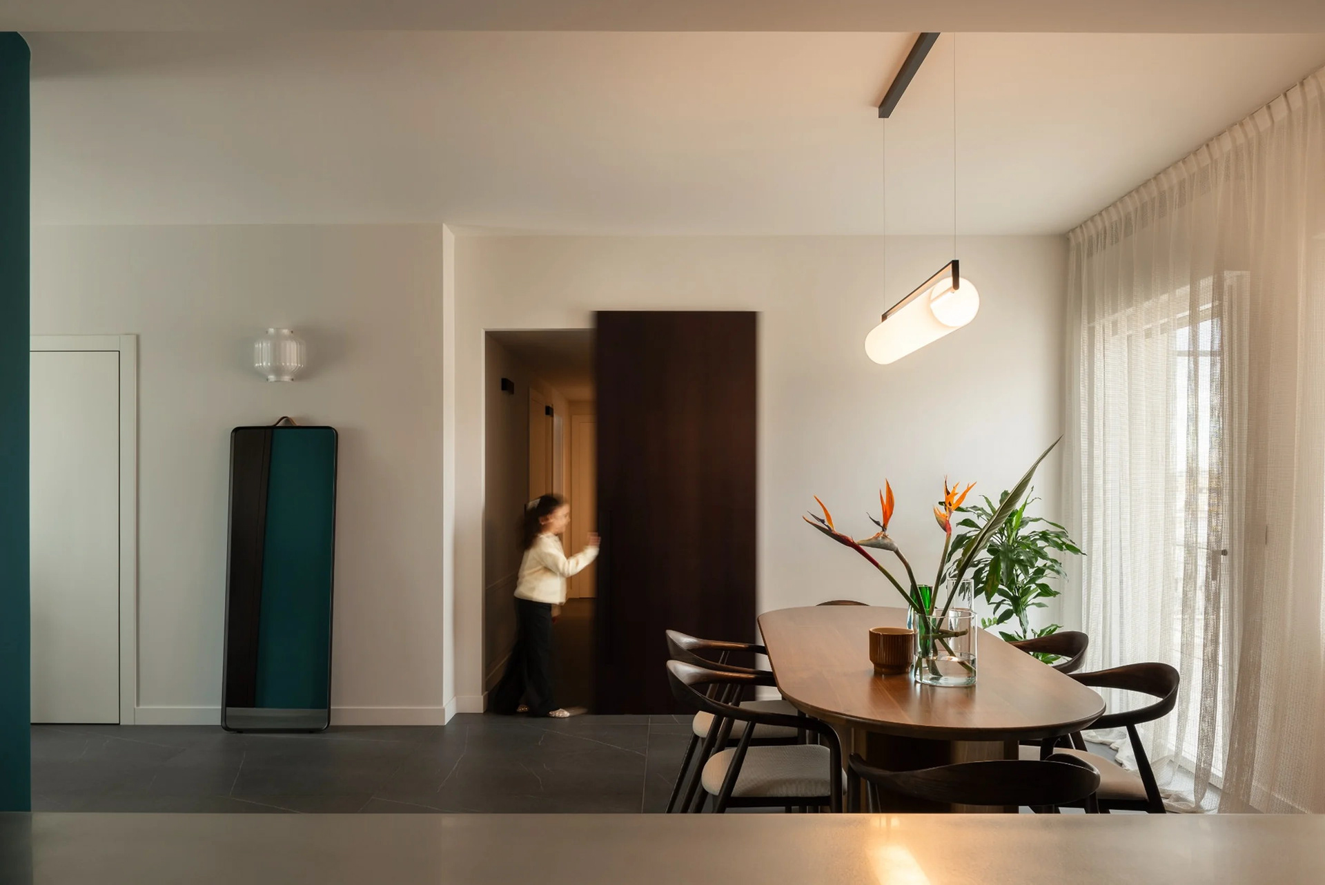 Un appartamento contemporaneo progettato come sequenza di spazi fluidi e continui, dove architettura e arredo dialogano attraverso materia, luce e colore.