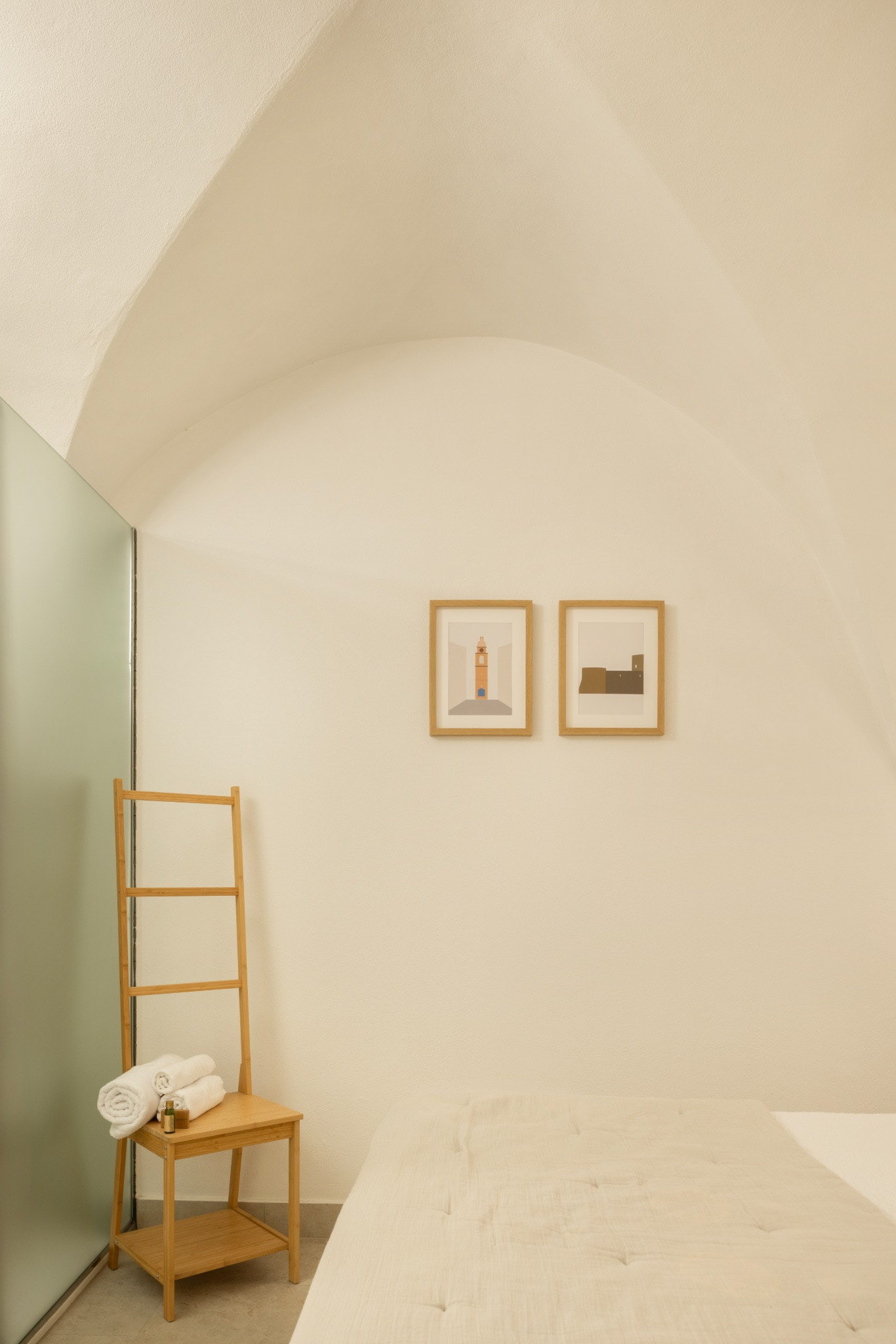 La scelta dei materiali richiama il paesaggio costiero pugliese attraverso superfici materiche, tonalità neutre e texture naturali.