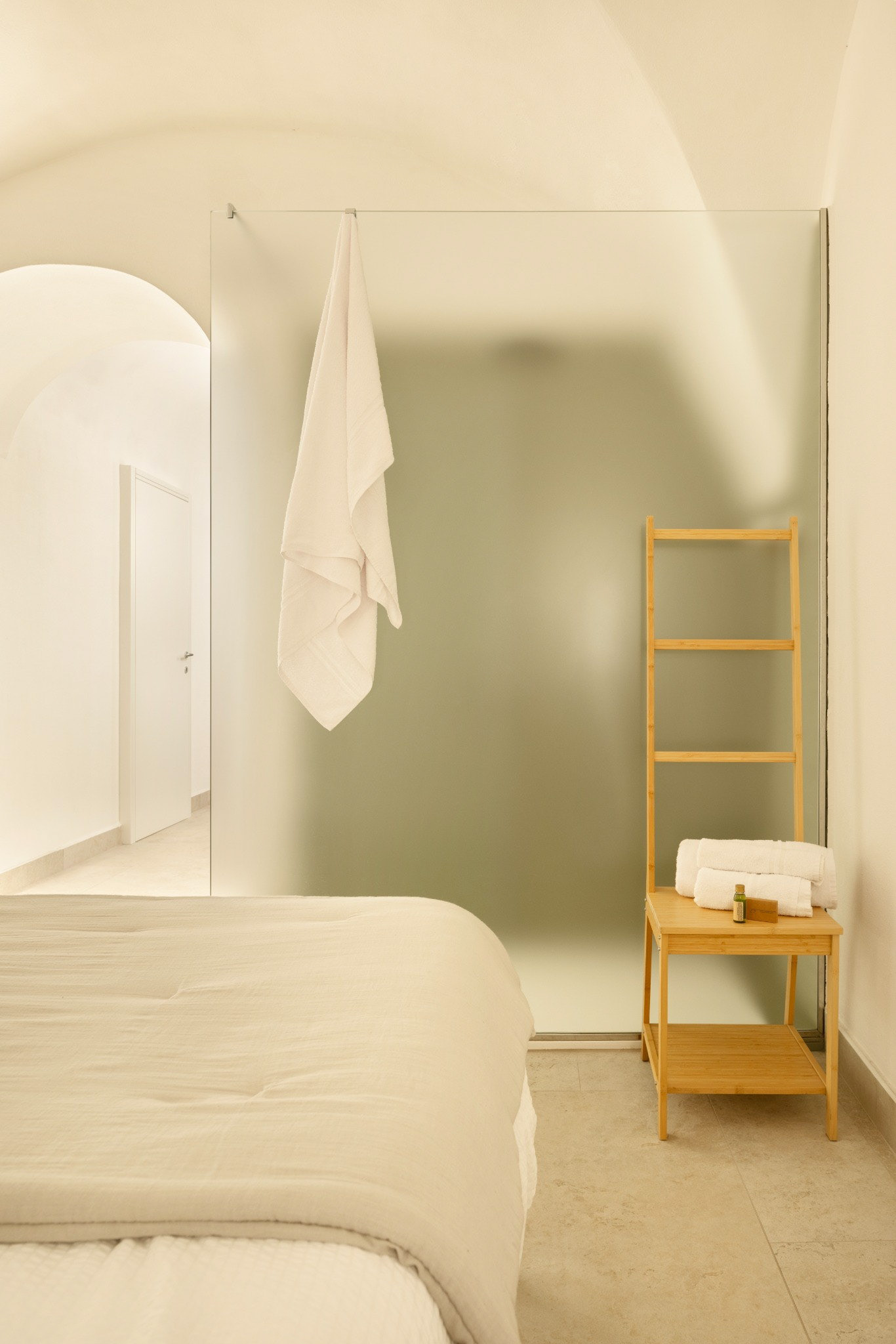 Legni caldi, finiture minerali e tessuti morbidi contribuiscono a definire un linguaggio essenziale e senza tempo, capace di trasmettere una sensazione di calma e accoglienza.