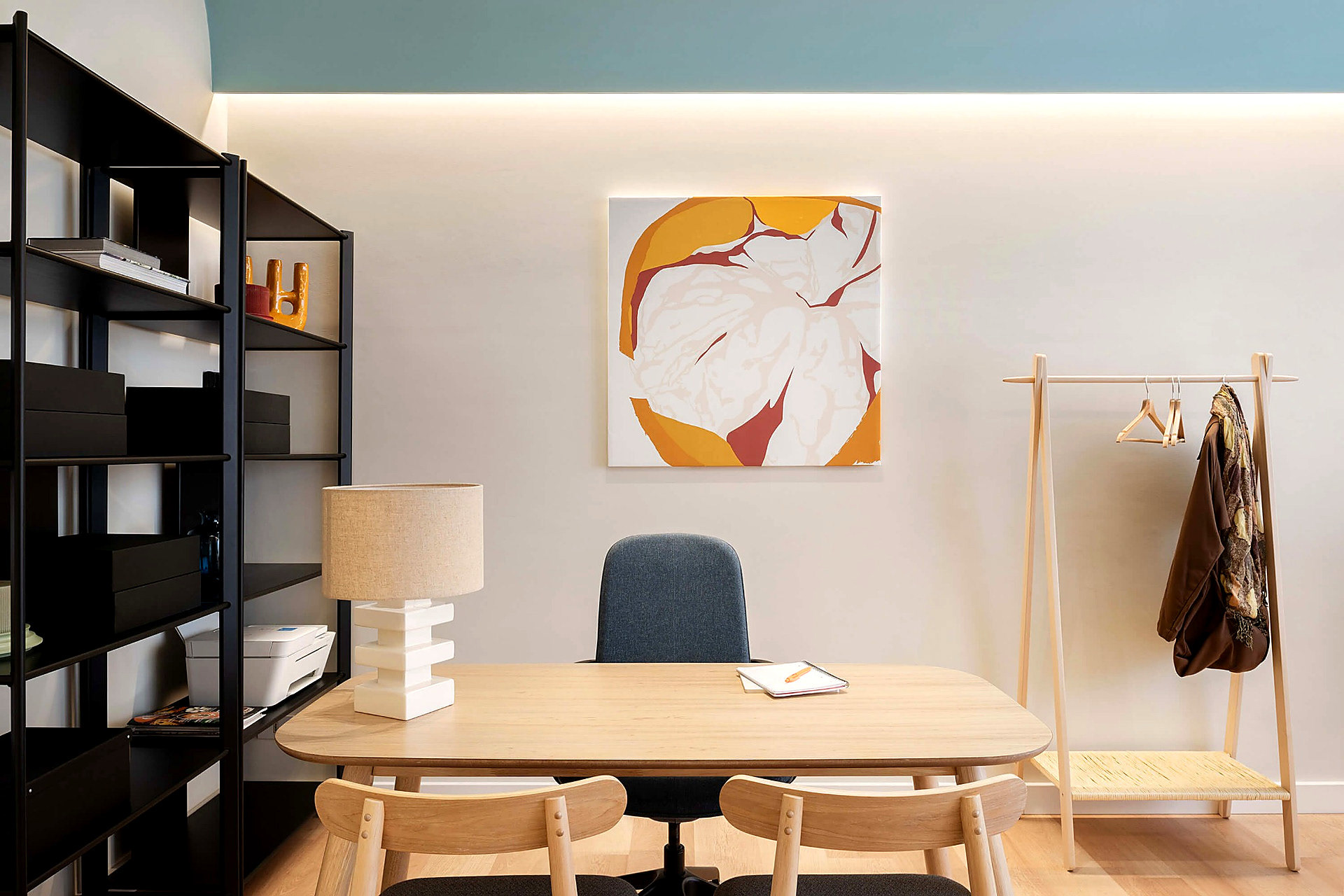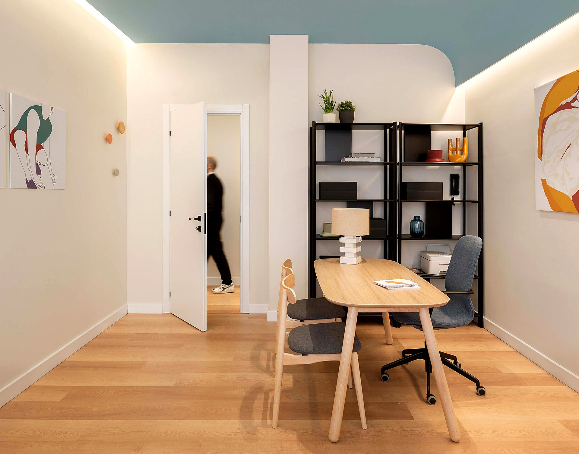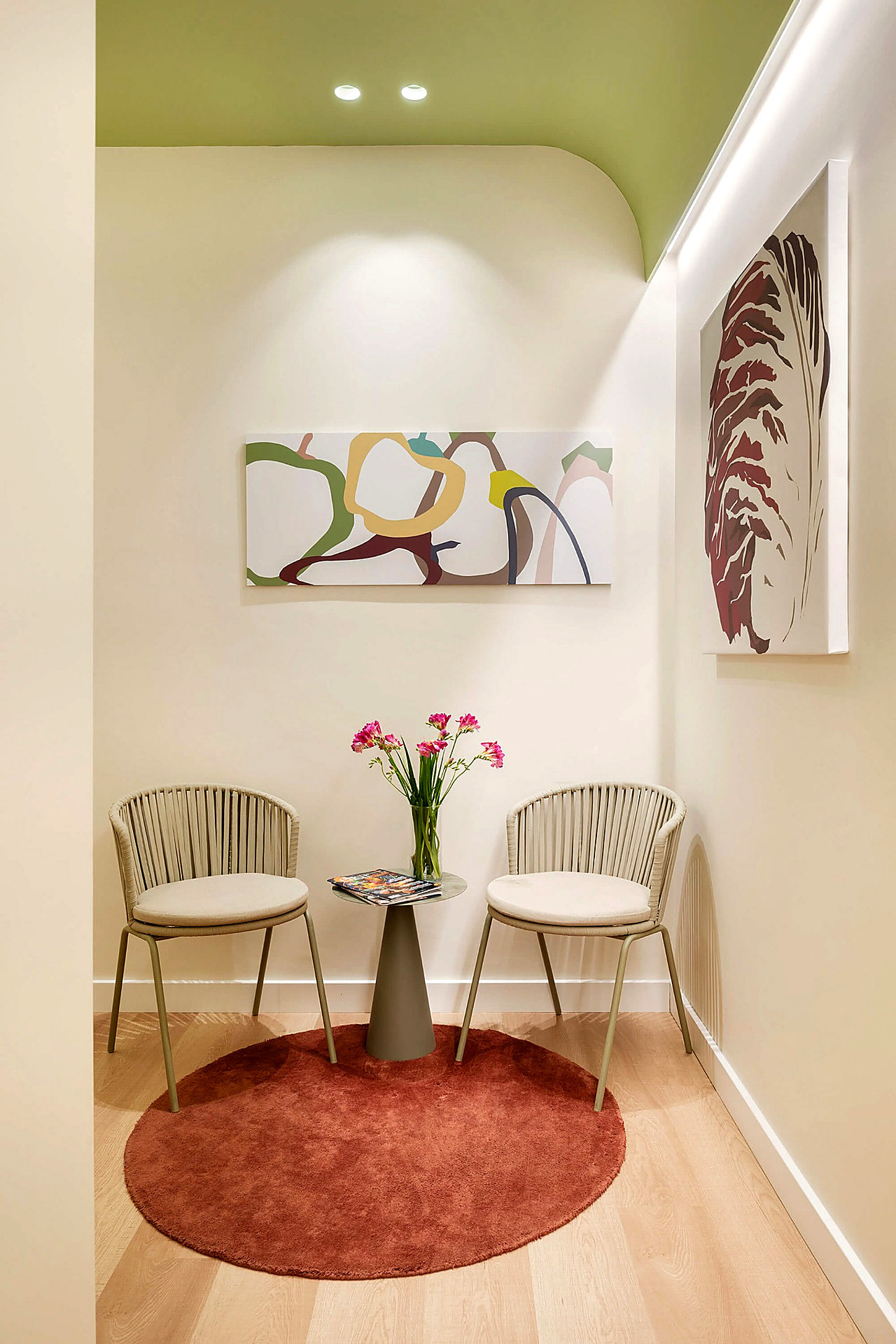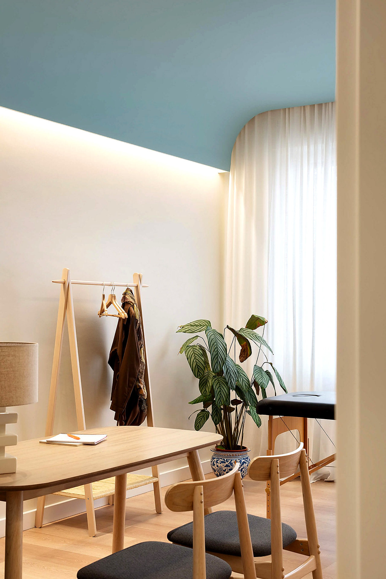 Attraverso un linguaggio architettonico morbido e continuo, caratterizzato da superfici curve, palette cromatiche naturali e illuminazione integrata, lo studio diventa uno spazio dedicato alla relazione tra professionista e paziente.